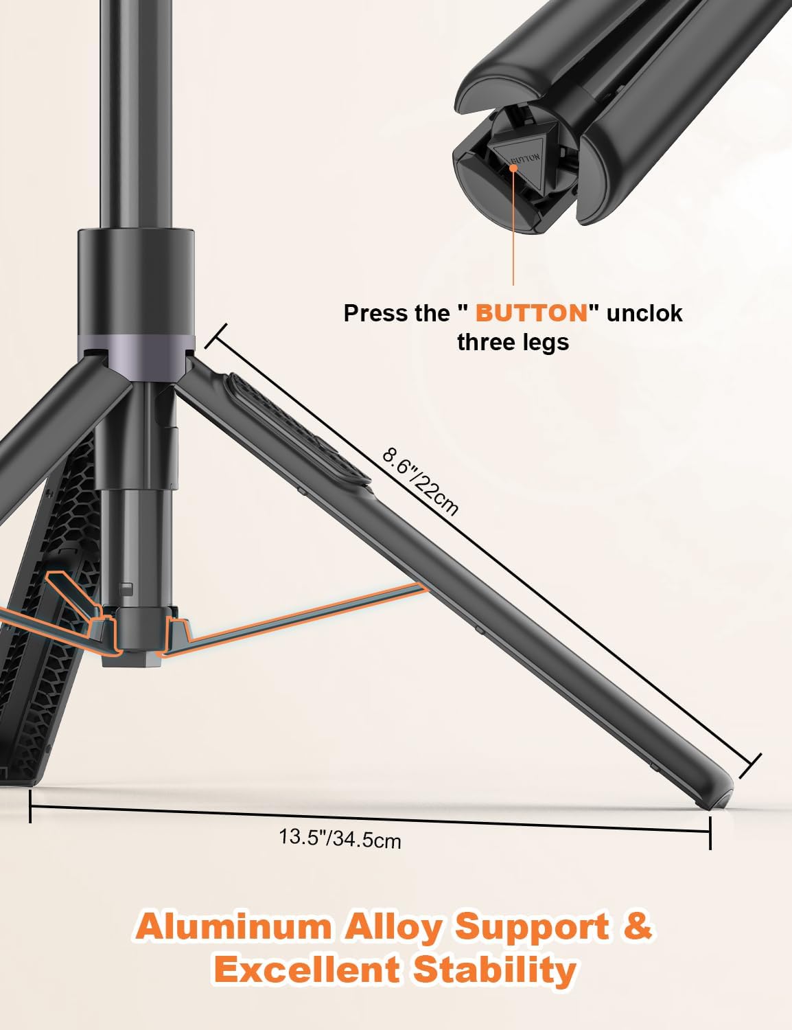 - Extends up to 173CM tall: The tripod stand consists of a 7-section retractable aluminum alloy pole that can be quickly adjusted from 30CM to 173CM in height