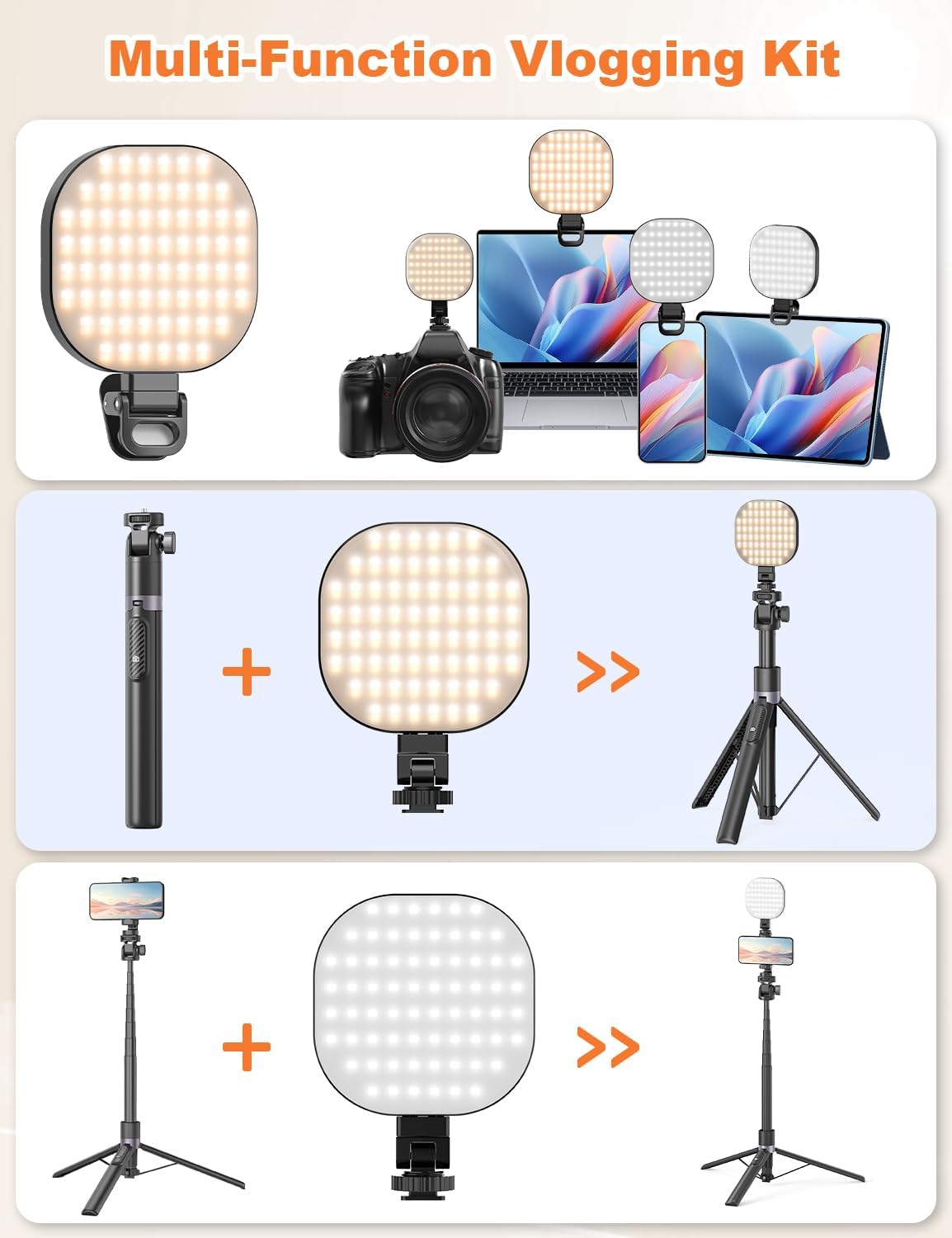 - you can switch directly between horizontal and vertical screens without worrying about tilting.The phone light clip can also be rotated 360° to meet your needs of shooting from different angles