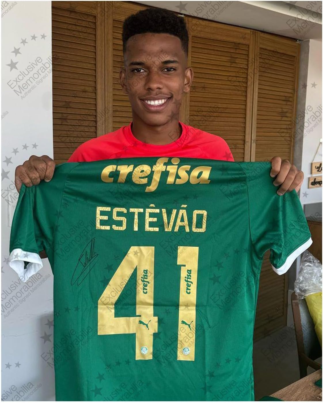 Estêvão Willian Signed Palmeiras 2024-25 Football Shirt. Standard Frame