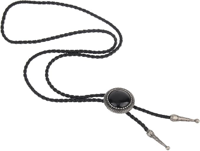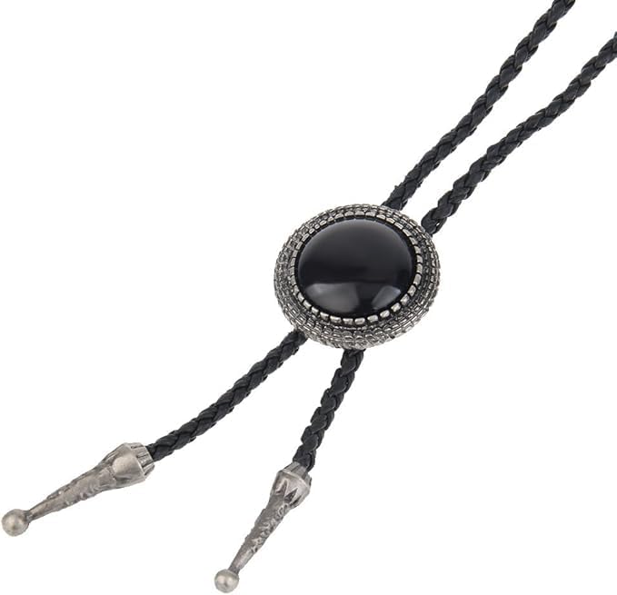 - AUTHENTIC DESIGN: Classic Western bolo tie featuring a striking black onyx stone centrepiece surrounded by an intricate antique silver beaded frame